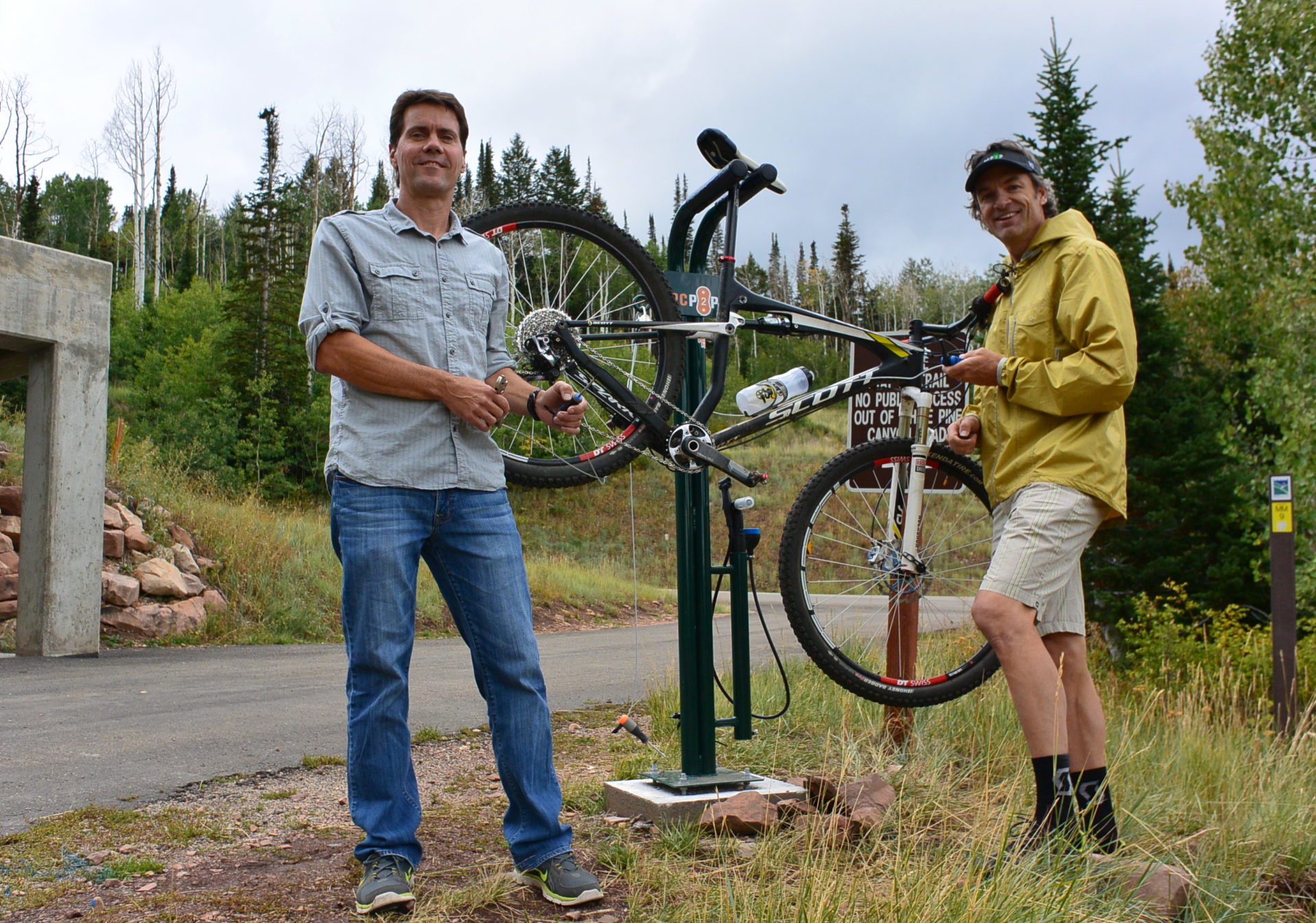 The Park City Point 2 Point (PCP2P) held their annual Labor Day Weekend mountain bike race again this summer, hosting athletes from 24 states and running the event over 75 miles of Park City trails. As a show of appreciation for allowing the event to take over the trail system for one day each year, they have recently purchased a bike repair stand for the Mid-Mountain Trail.